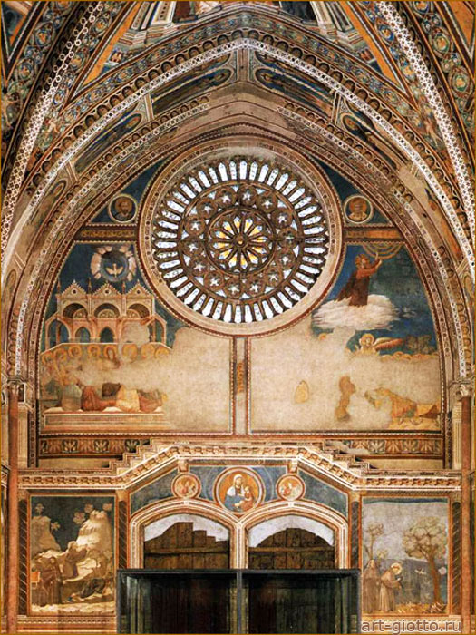 Фрески в Верхней церкви Сан Франческо в Ассизи по праву считают первым значительным произведением Джотто - всего 25 фресок, живописующих сцены из Ветхого Завета (ок. 1290), сцены из Нового Завета (ок. 1290), сцены из жизни Святого Франциска Ассизского (1297-1300), а также свод Отцов церкви (ок. 1290-1300).